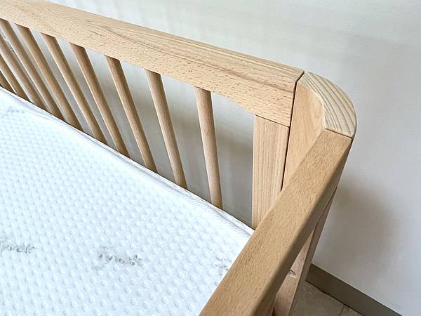▲整台嬰兒床是以包裹式圓弧設計,沒有一度尖銳,防磕碰設計讓寶寶使用上更加安全