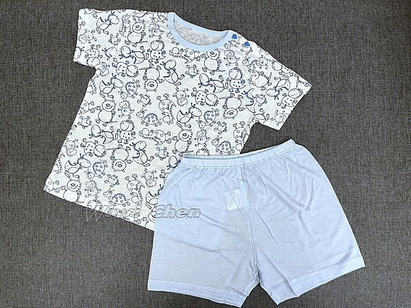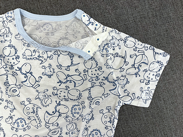 看到這套短袖套裝,第一眼就被它的小塗鴉圖案吸引,是錢錢很喜歡的小恐龍跟怪獸!可愛又活潑,顏色清爽也很適合夏天!