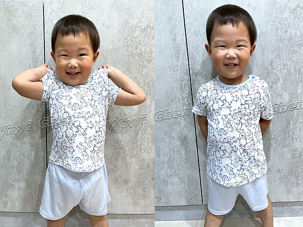 衣服尺寸這邊是挑90cm的,想說之後可以讓弟弟銜接穿,錢錢目前92cm,底褲扣子扣上稍微合身一點XD但在家裡基本都開扣狀態所以沒差~重點錢錢本身很會流汗,常常在家玩玩具太激動就開始流汗,還沒出門就搞得一身濕。換這款後,不但快乾,還能保持皮膚乾爽不悶熱。洗完澡換上當睡衣也很適合!半夜睡覺也不用擔心汗流到整件衣服濕掉、吹冷氣會感冒!隔天起床衣服都還是乾爽狀態!