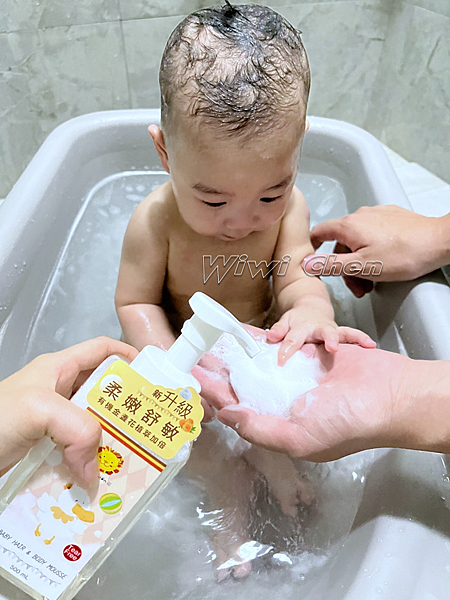洗完後肌膚摸起來滑嫩不乾澀,頭髮也柔順好梳,特別適合快速幫寶寶完成沐浴的時候。